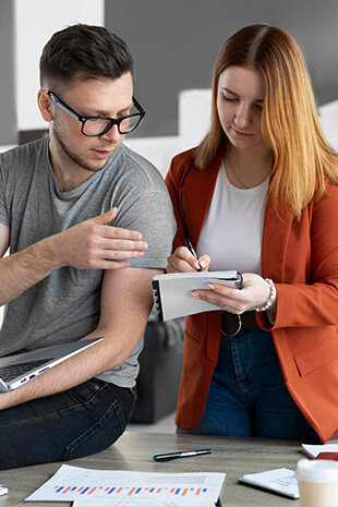 Expertos de Blue Technologies Inc. instalando un panel de control de seguridad.